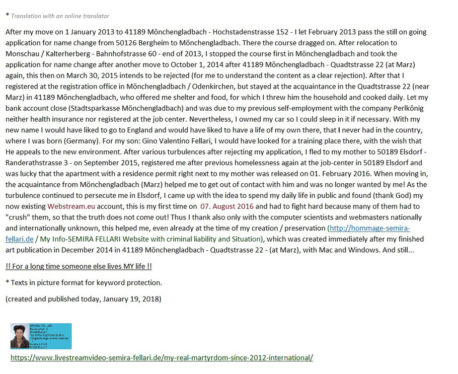 SEMIRA FELLARI Dokuvideos zum persönlichen Schaden von Januar 2017